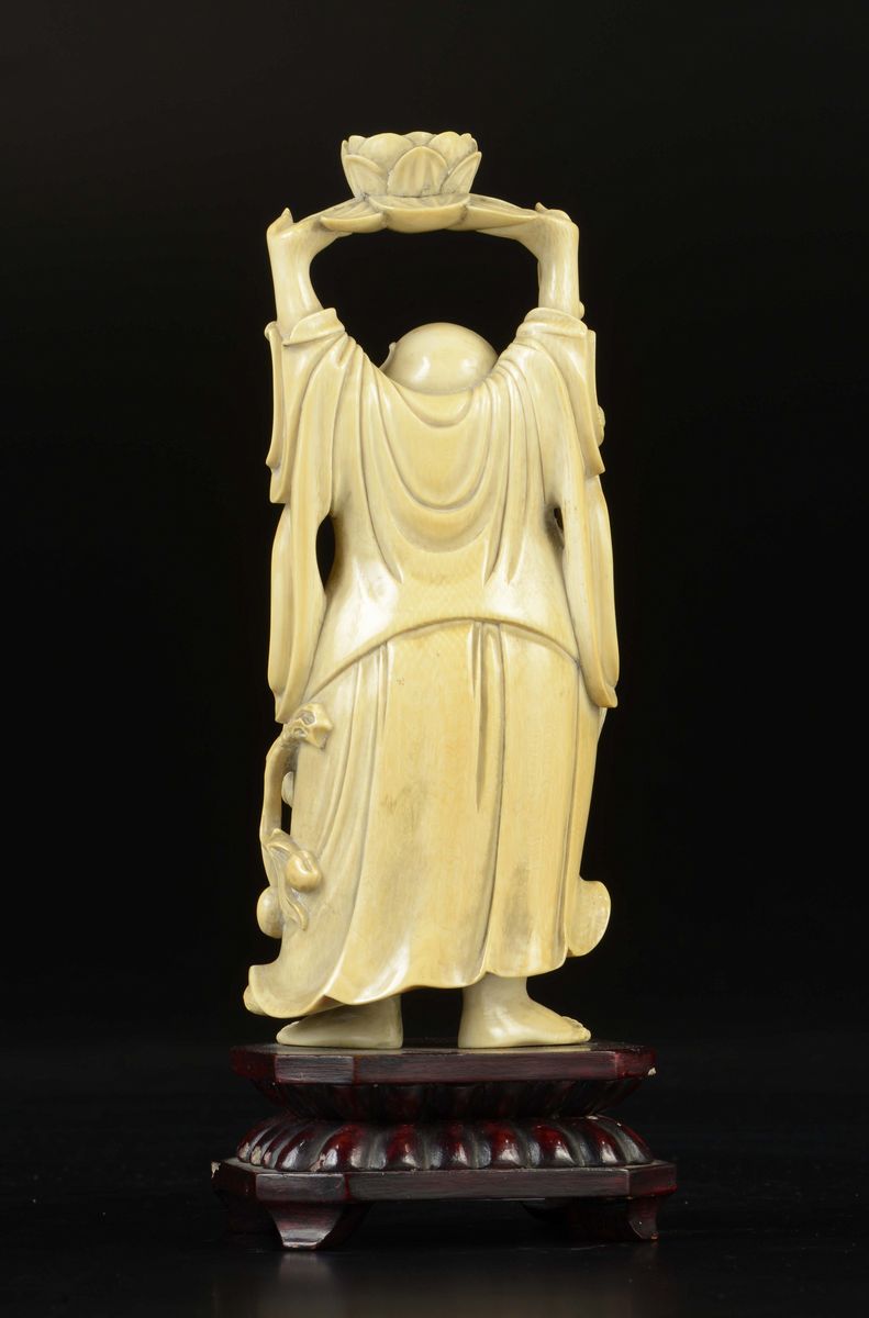 A carved ivory figure of Budai with lotus flower, China, early 20th century