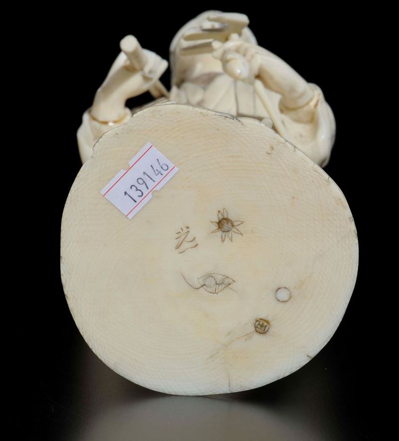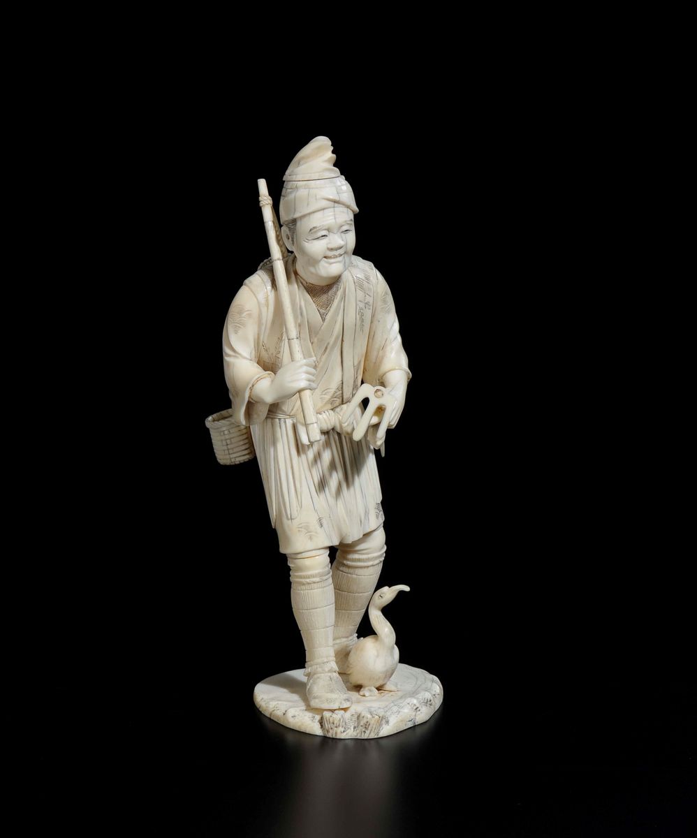 A carved ivory figure of farmer with goose, Japan, early 20th century