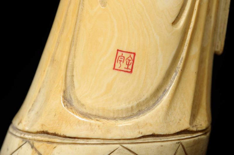 A carved ivory Guanyin with flowering branches, China, early 20th century