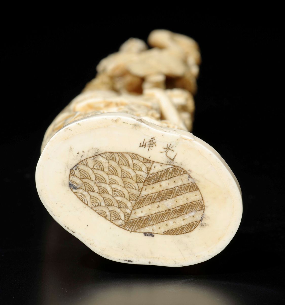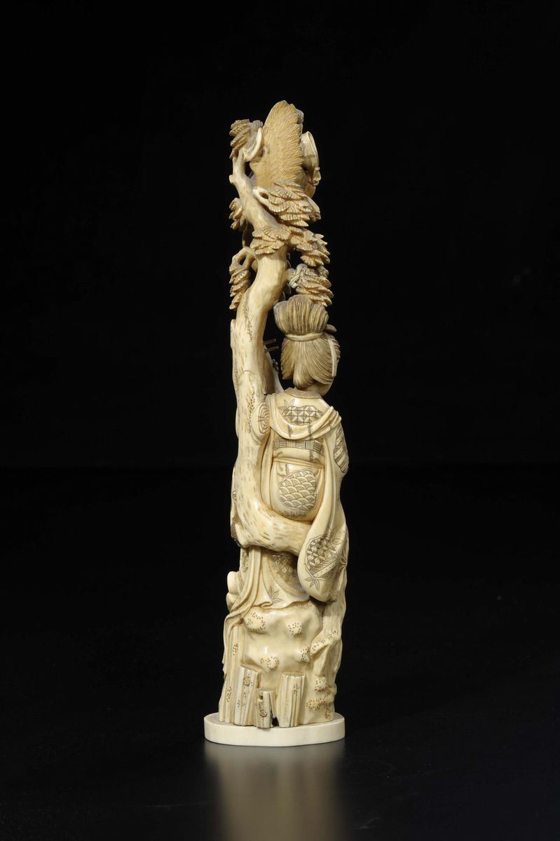 A carved ivory playing Guanyin, satyr and crane group, Japan, early 20th century