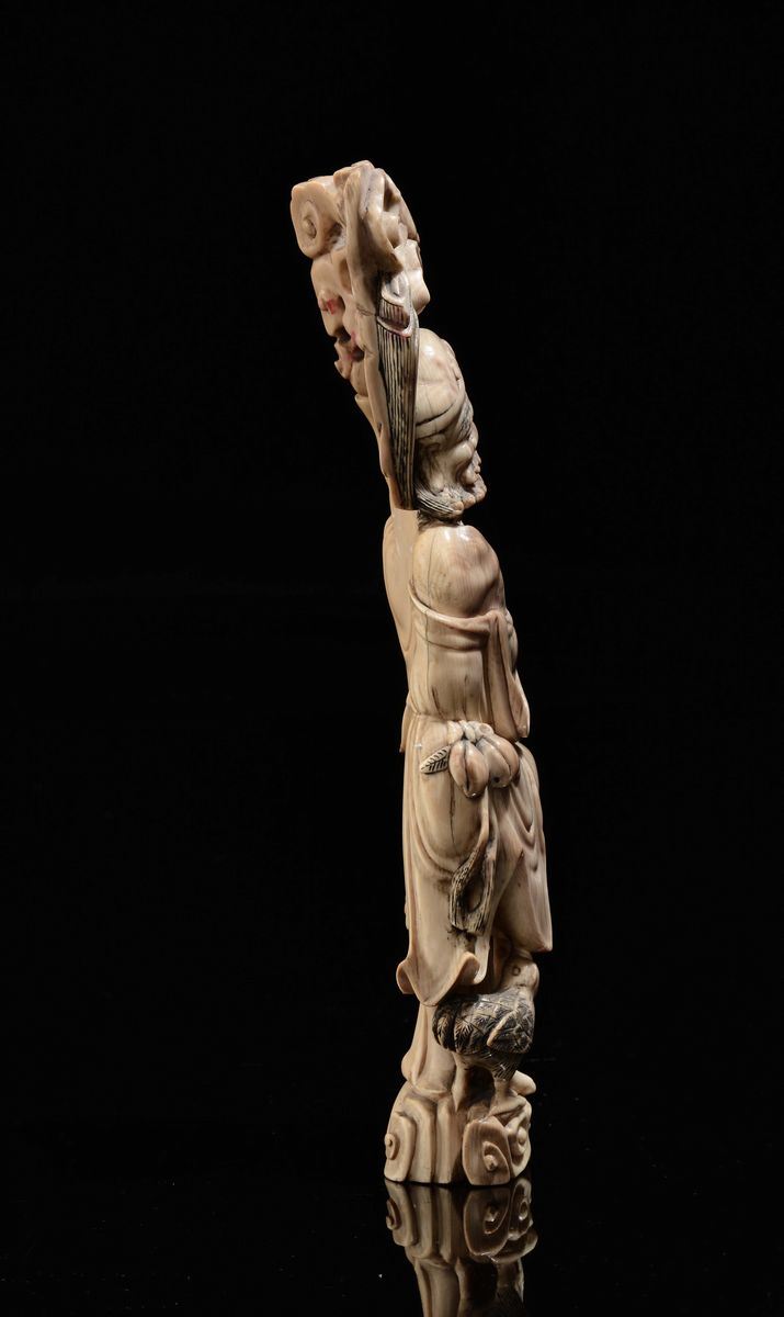 A carved ivory wise man with stick and flowers vase with bats group, China, Qing Dynasty, 18th century