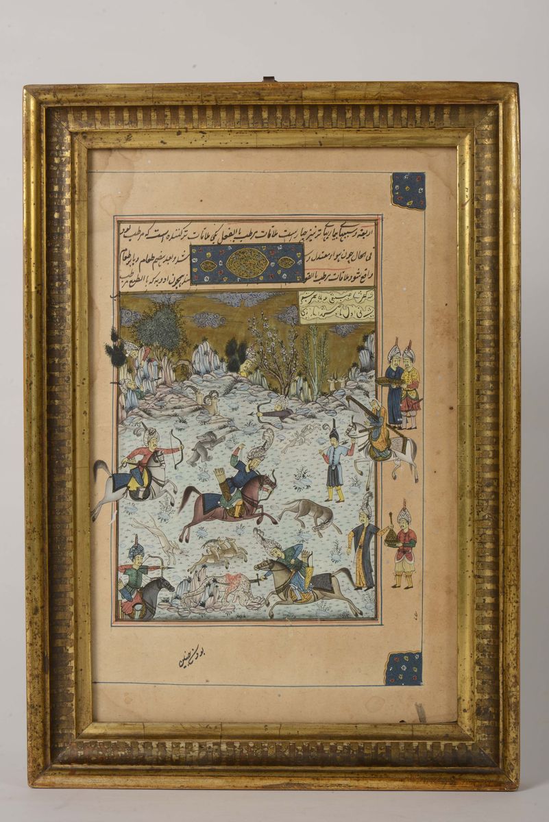 A framed parchment depicting battle scene and with Sanskrit inscriptions, India, 19th century