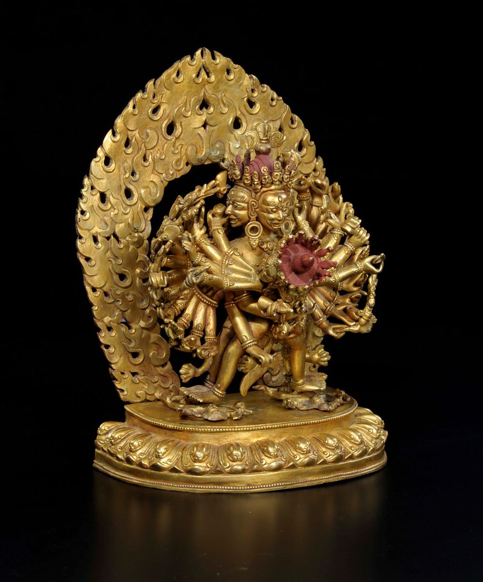 A gilt bronze figure of Yamantaka with aura, China, 20th century