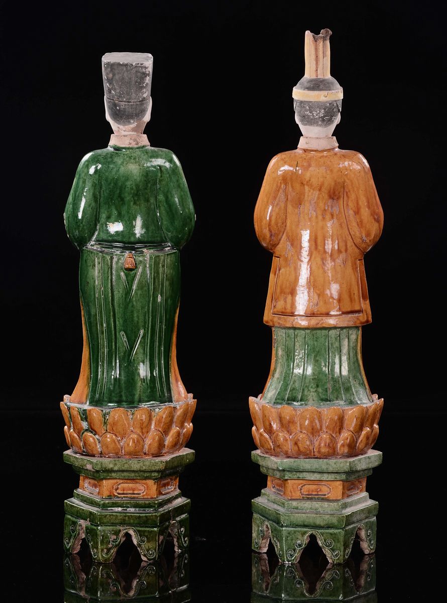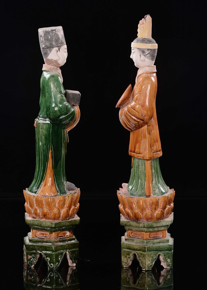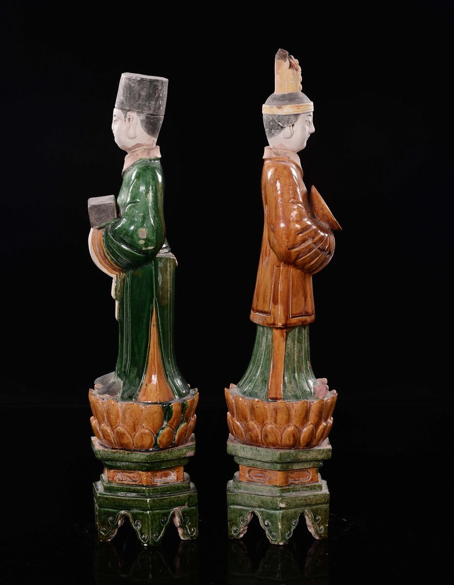A pair of Sancai pottery dignitaries, China, Ming Dynasty, 16th century
