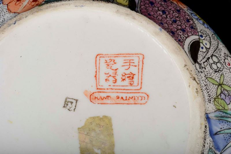 A polychrome enamelled porcelain box and cover with flowers and butterflies, China, 20th century