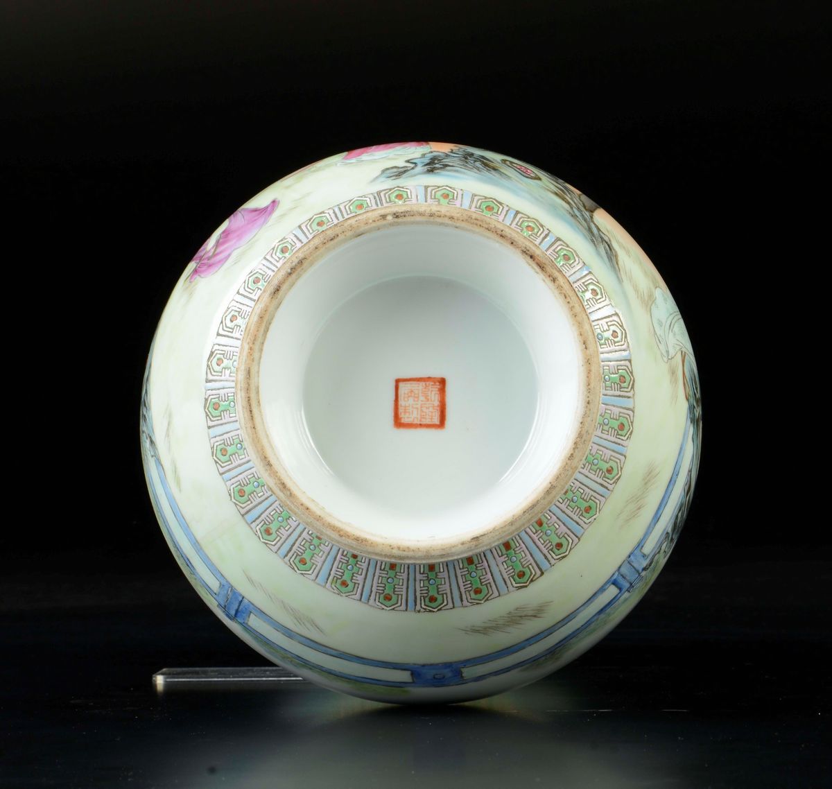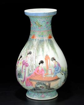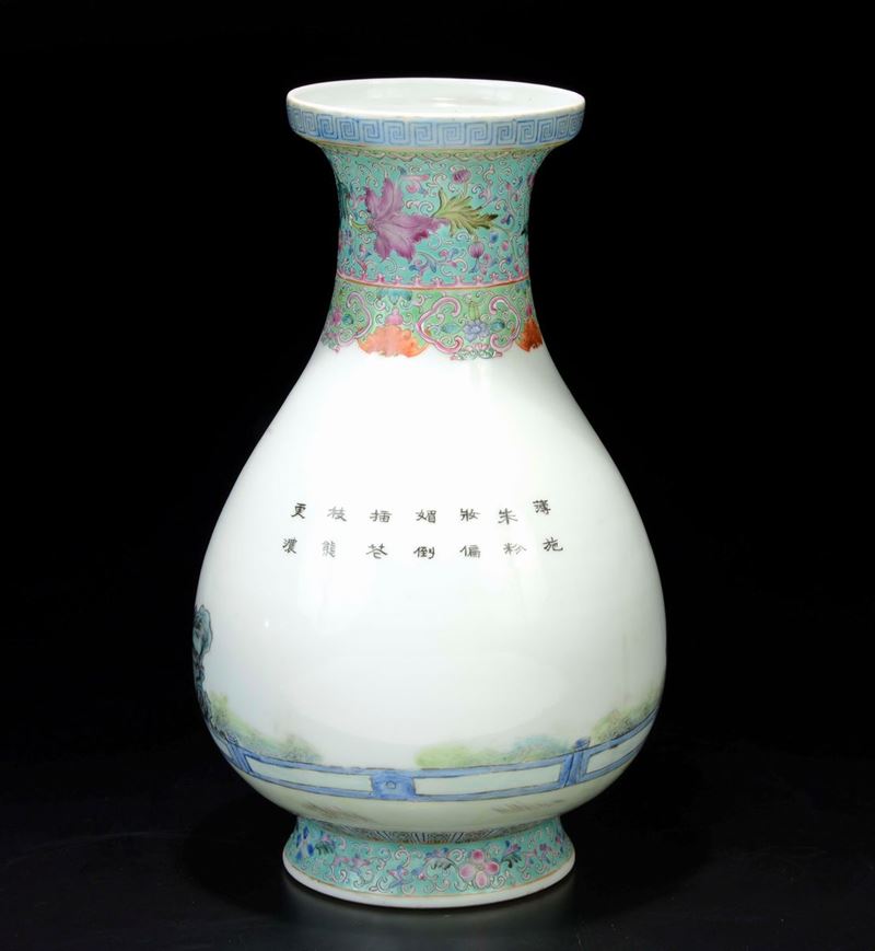 A polychrome enamelled porcelain vase with Guanyin and inscriptions, China, 20th century
