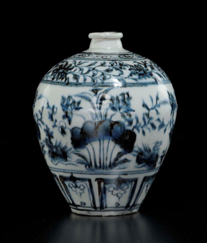 A small blue and white jar with naturalistic decoration, China, 20th century