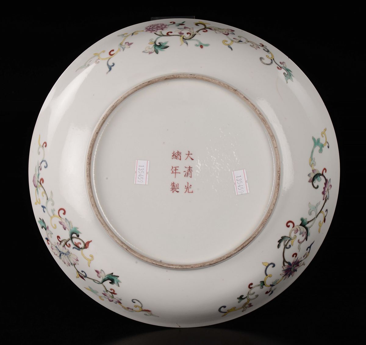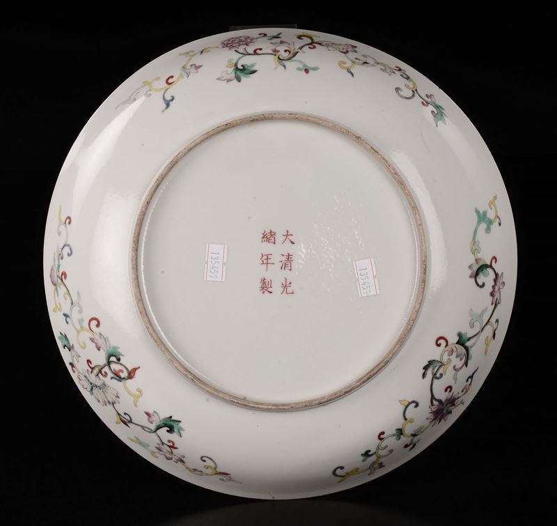 A yellow-ground polychrome enamelled porcelain dish with bats, China, 20th century