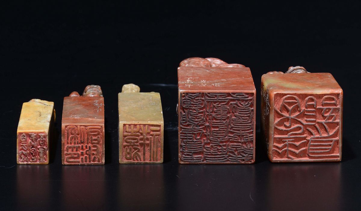 Five hardstones seals with Pho dogs, China, 20th century