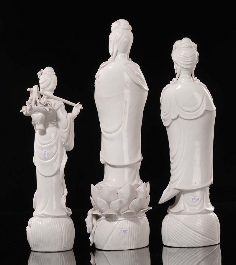 Three Blanc de Chine figures of Guanyin, China, 20th century