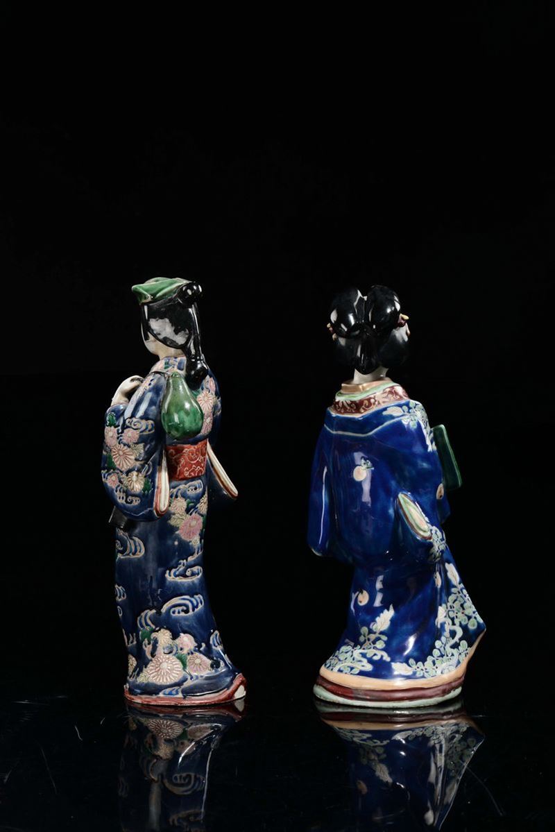 Two polychrome enamelled porcelain figures, Guanyin and dignitary, Japan, late 19th century