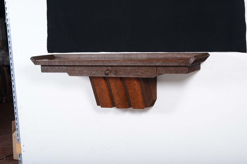 Coppia di consolle in legno di radica e noce graffito. Parere favorevole Archivio Colli.Prod. Colli, Italia, 1940 ca.cm 140x35x45