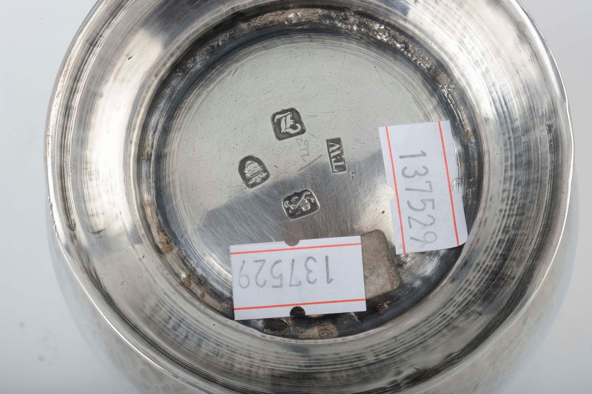 corpo piriforme liscio e manico sagomato, monogramma inciso sul fronte, gr. 320, altezza cm 12,5