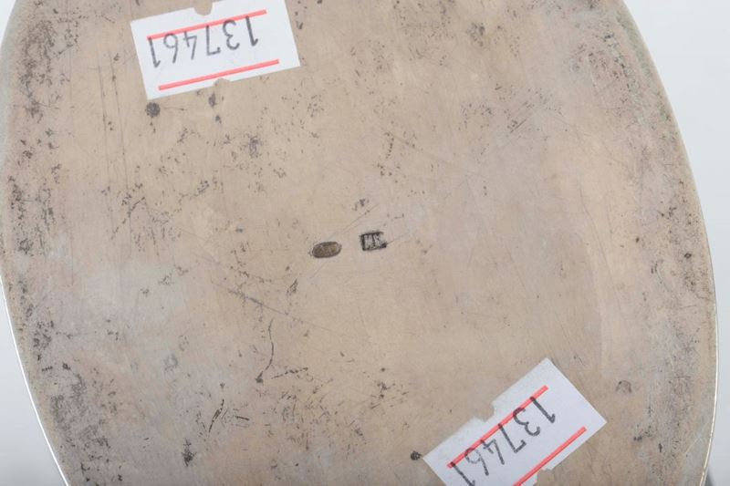 corpo ovale, beccuccio sagomato e manico in legno, gr. 650, altezza cm 16,5