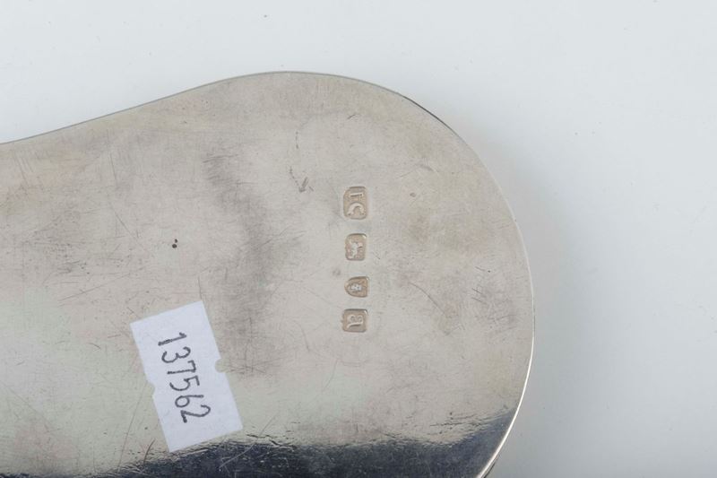 forma ellittica sagomata e bordura a ringhiera a traforo ovale con perlinatura, gr. 140, cm 19,5