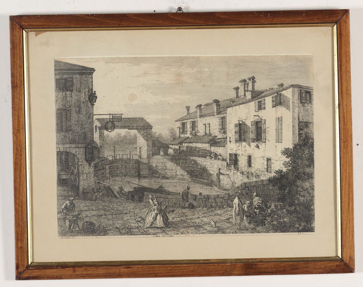 Acquaforte di Canaletto raffigurante veduta di Dolo, XVIII secolo