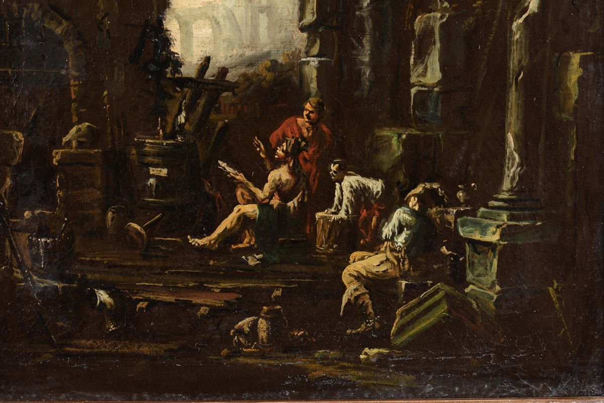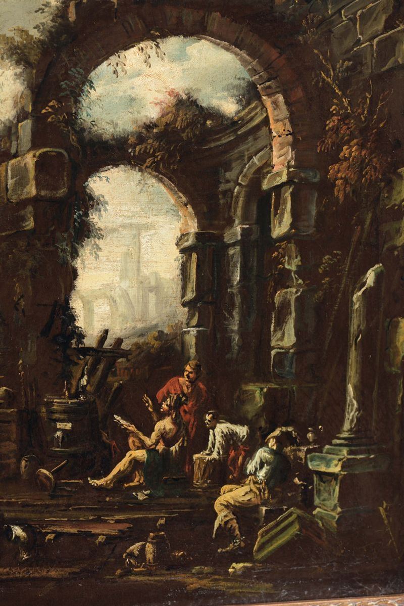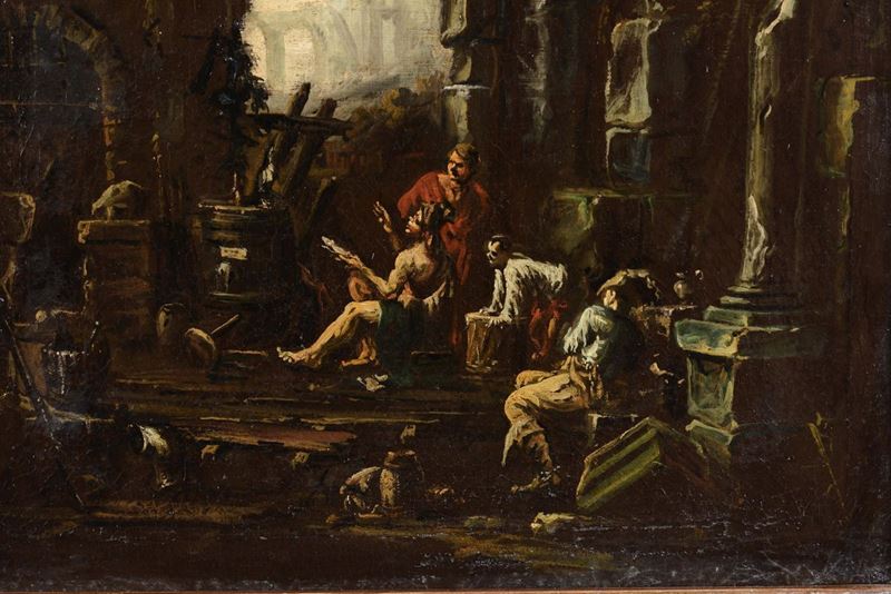 Alessandro Magnasco (1667-1749), cerchia di Paesaggio con architetture e personaggi