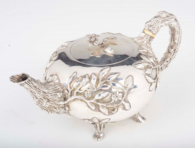 An embossed, molten and chiselled silver tea-pot, silversmith Charles Jolie Edington, London 1829