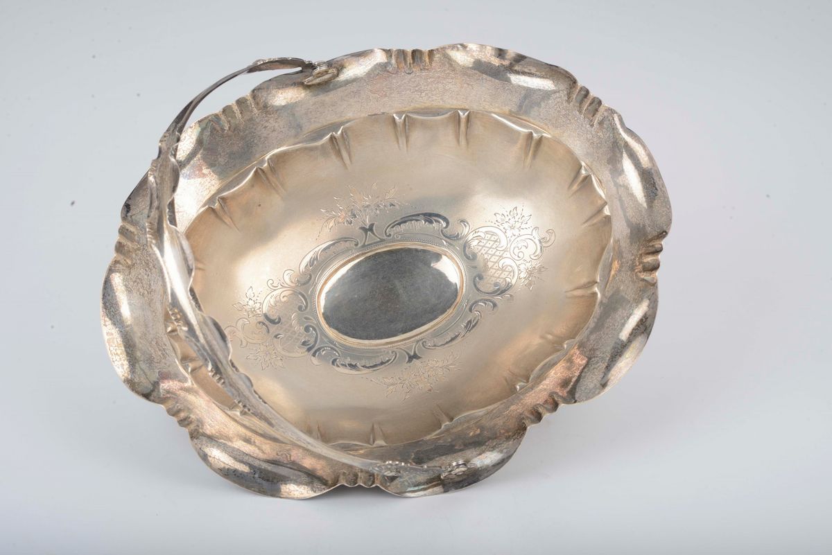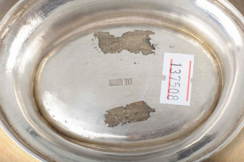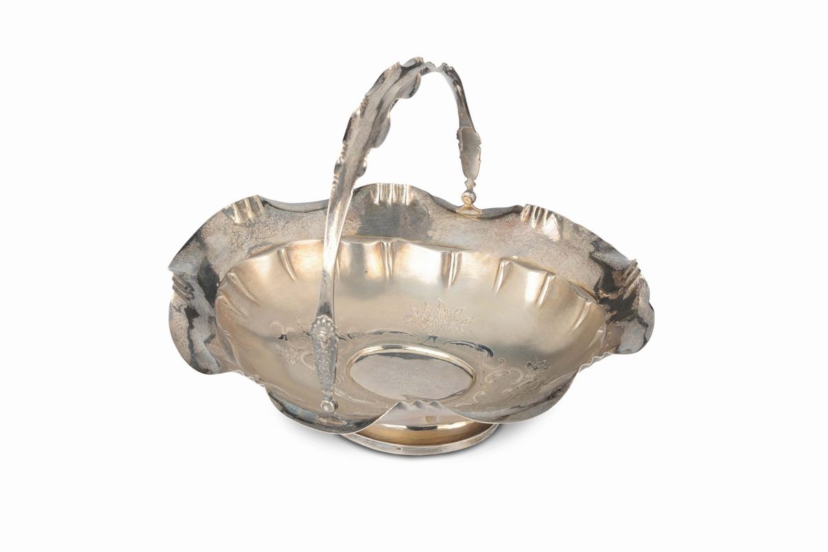 bordo ondulato e riserva a volute al centro del cavetto, gr. 495, altezza cm 22, diametro cm 28