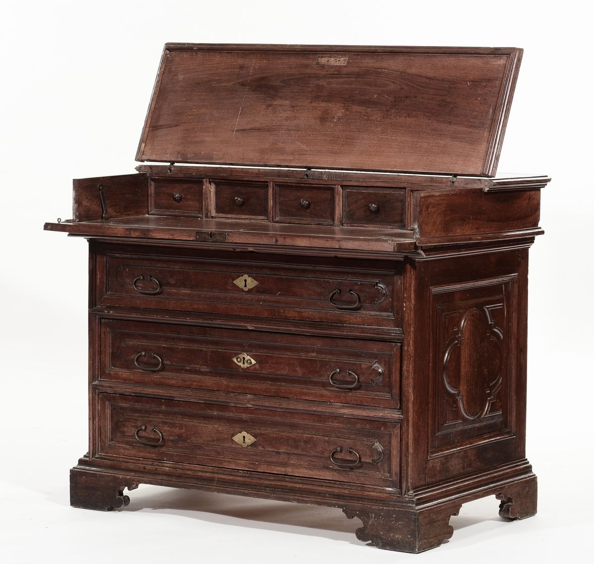 Cantarano in noce a tre cassetti e calatoia, XVII secolo