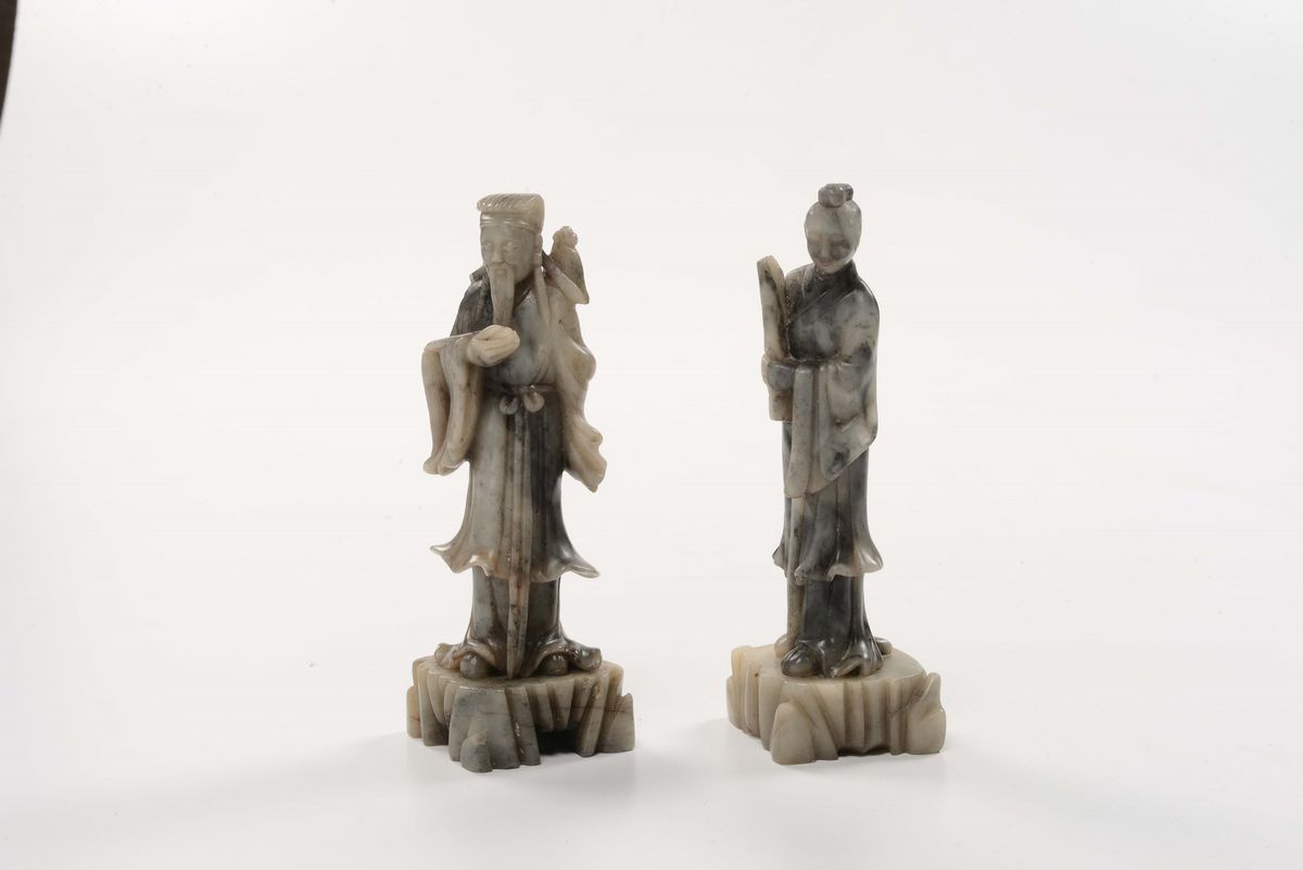 Coppia di personaggi, dignitario e Guanyin, Cina