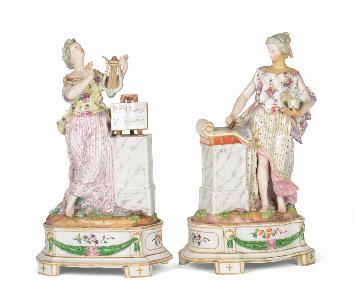 Coppia di sculture in porcellana policroma, Meissen XX secolo