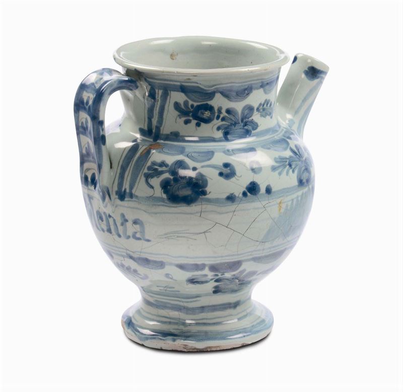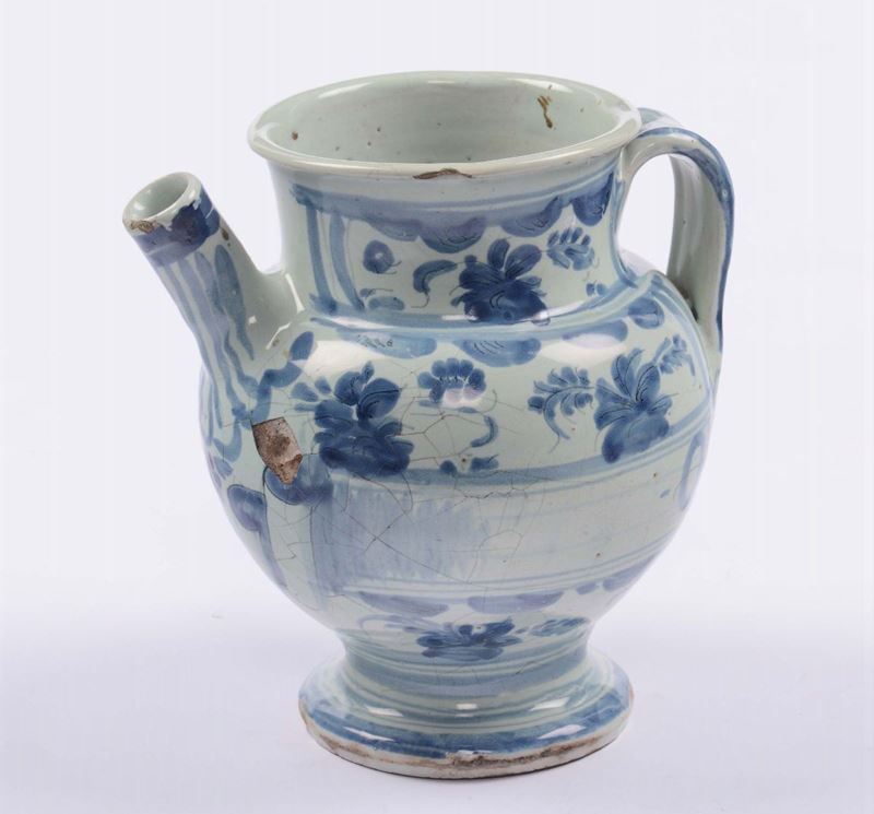 Orciolo in maiolica di farmacia con decorazione “a tappezzeria”, Savona XVII secolo