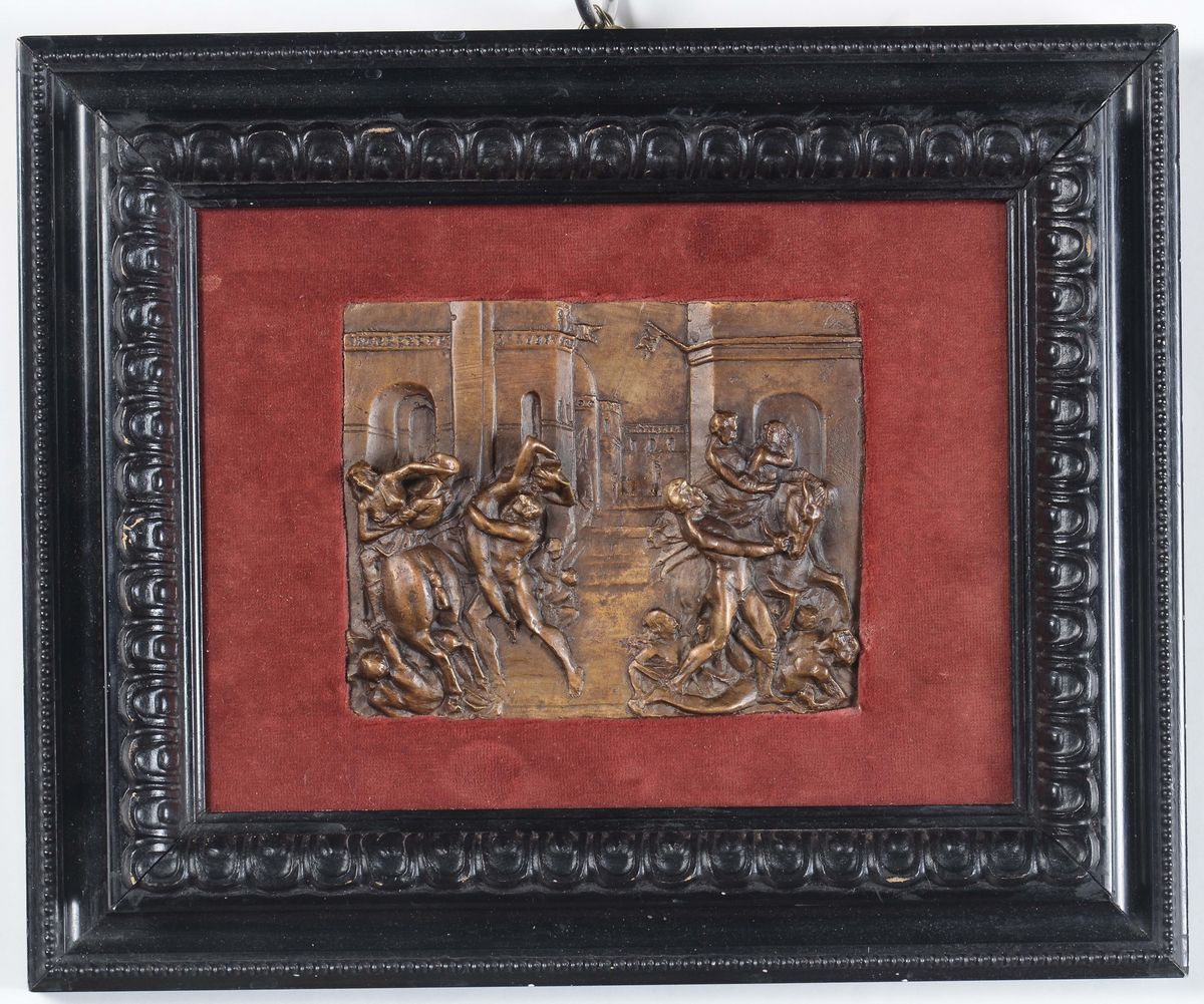 Piccola formella in bronzo raffigurante il ratto delle sabine