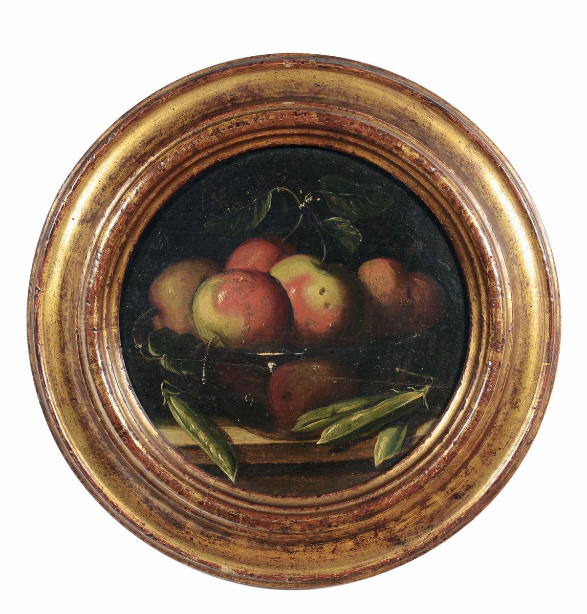 quattro dipinti ad olio su tavola, diametro cm 23, in cornici non coeve