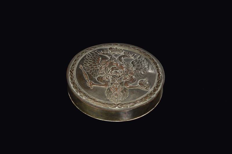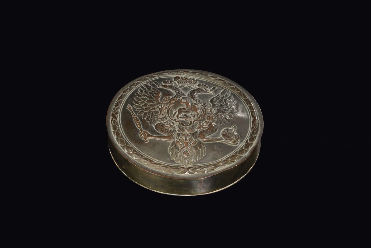 Sigillo imperiale in cera lacca con coperchio in rame, Russia XIX-XX secolo