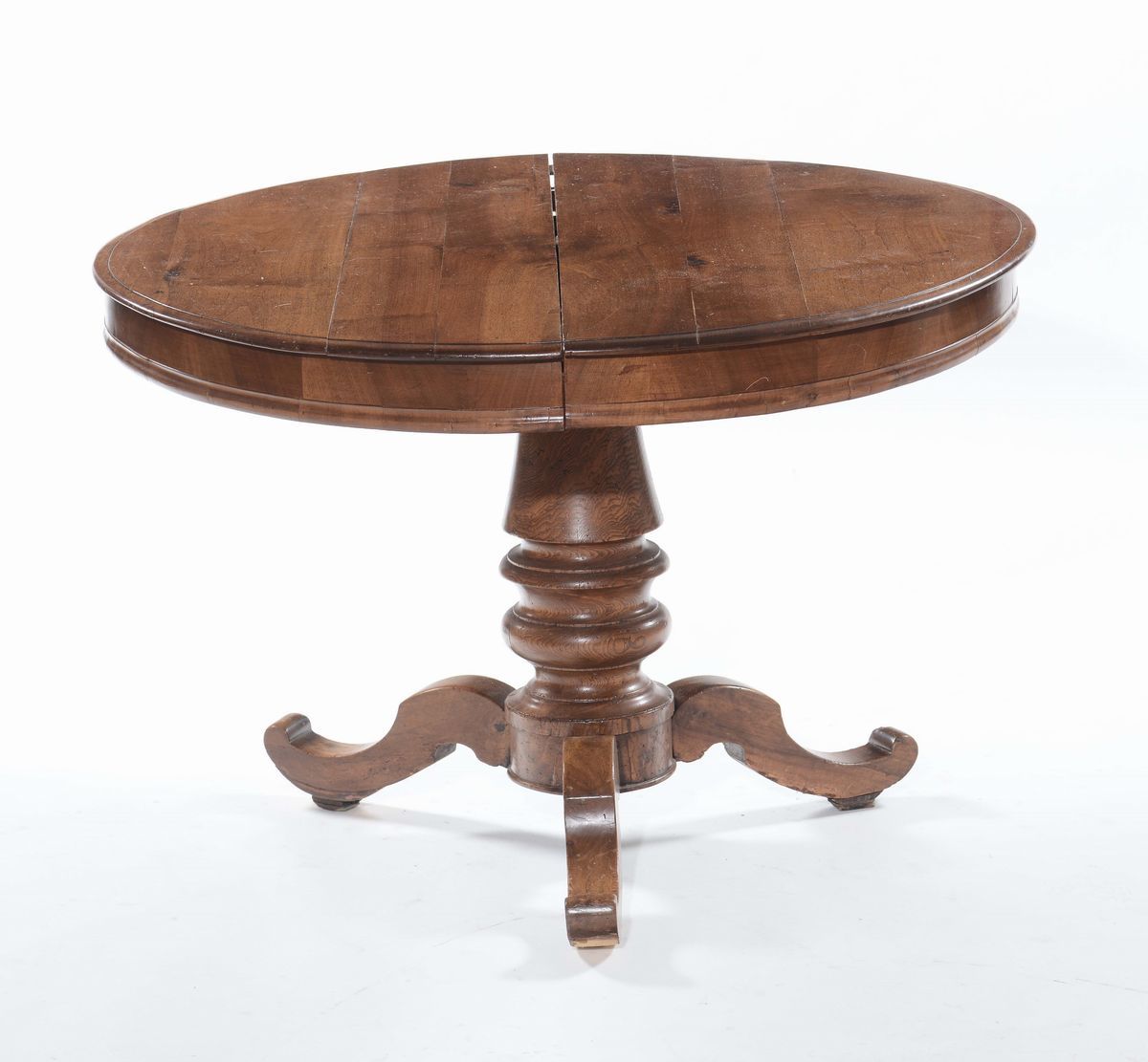 fusto tornito terminante con tre piedi a voluta, diametro cm 116, altezzacm 75