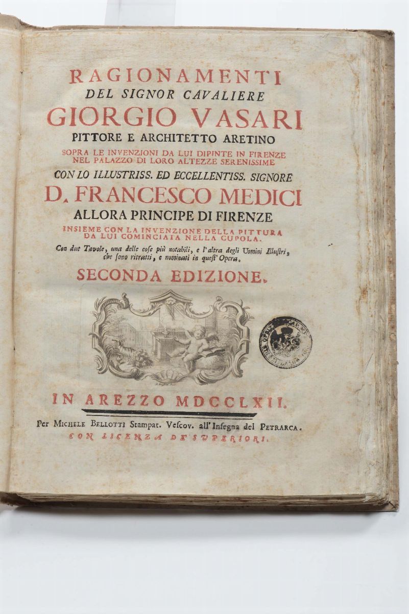 Arezzo, Bellotti 1762, legatura coeva in cartone alla rustica. Ex Libris a timbro frontespizio