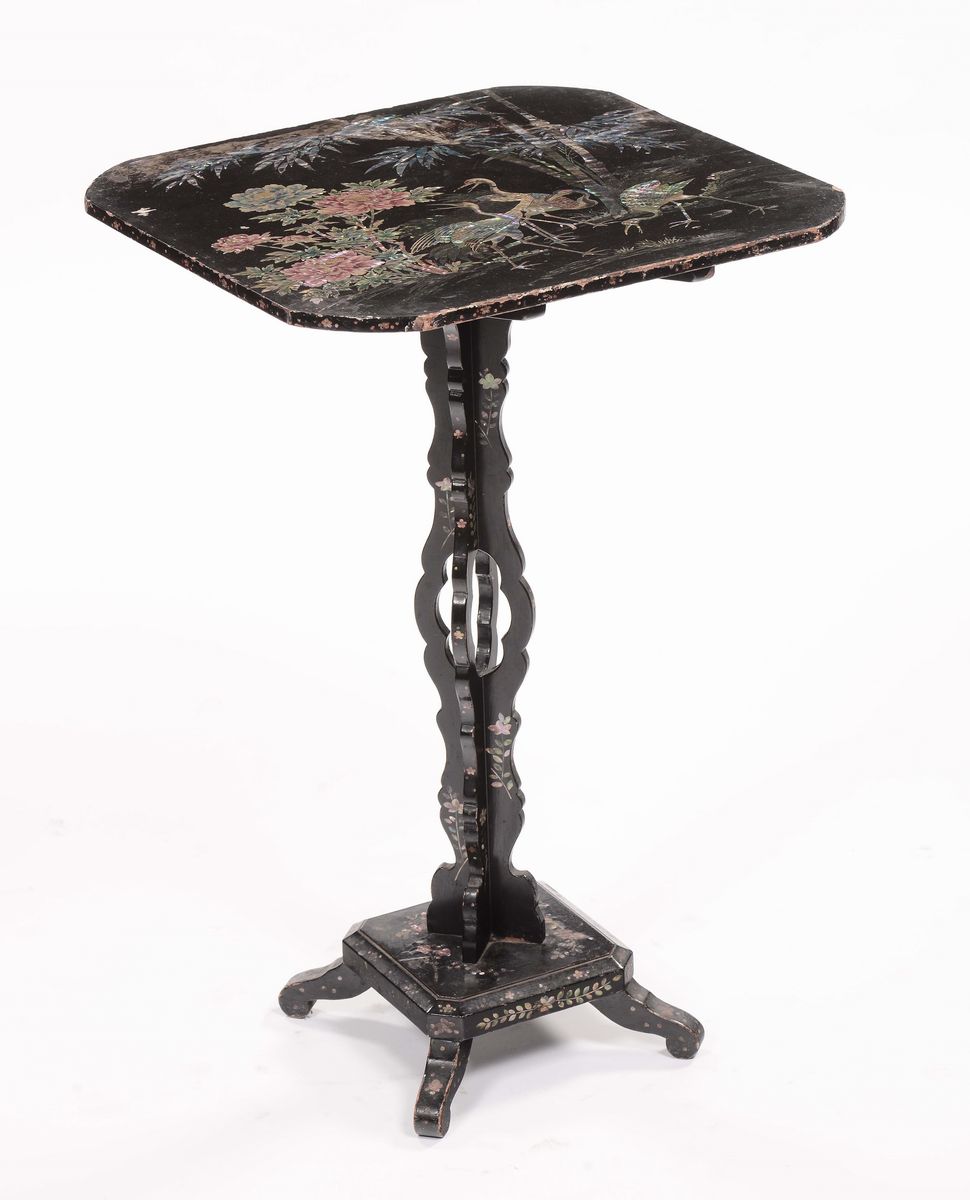 Wooden coffee table with mother-of-pearl inlays depicting herons, China, Qing Dynasty, 19th century