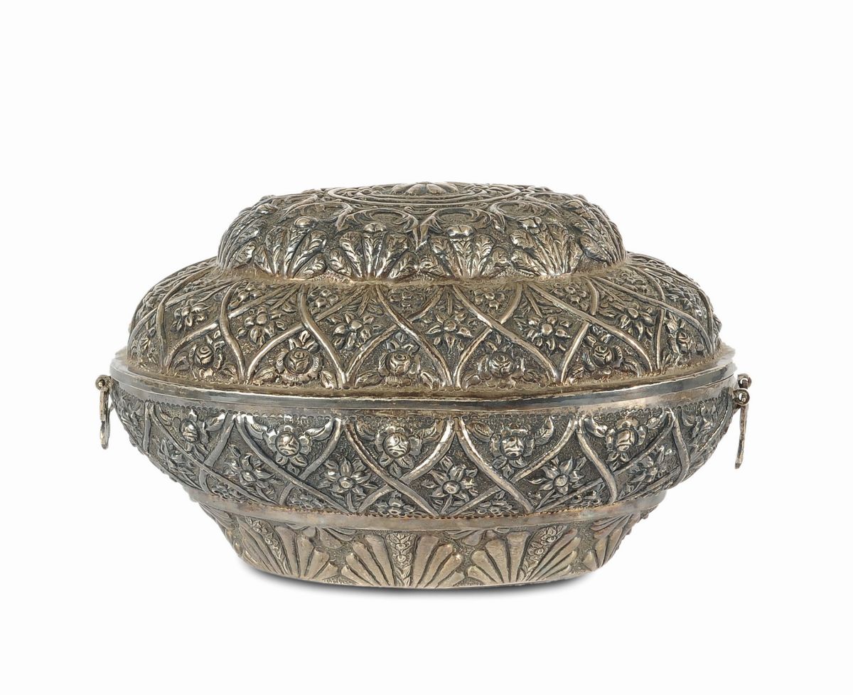 Zuppiera in argento a foggia di cesto