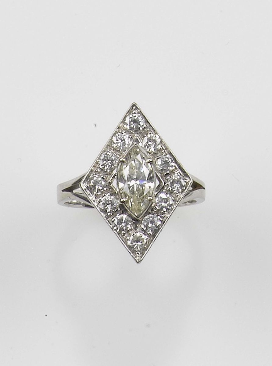 A marquise-cut diamond ring. Mounted in white gold 750/1000