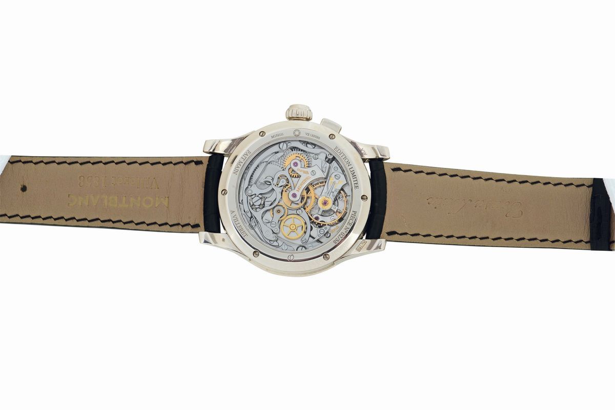 Montblanc, Collection Villeret” No. 02/58, 18K white gold monopusher chronograph wristwatch with pulsometer scale, 24 hours [..]
