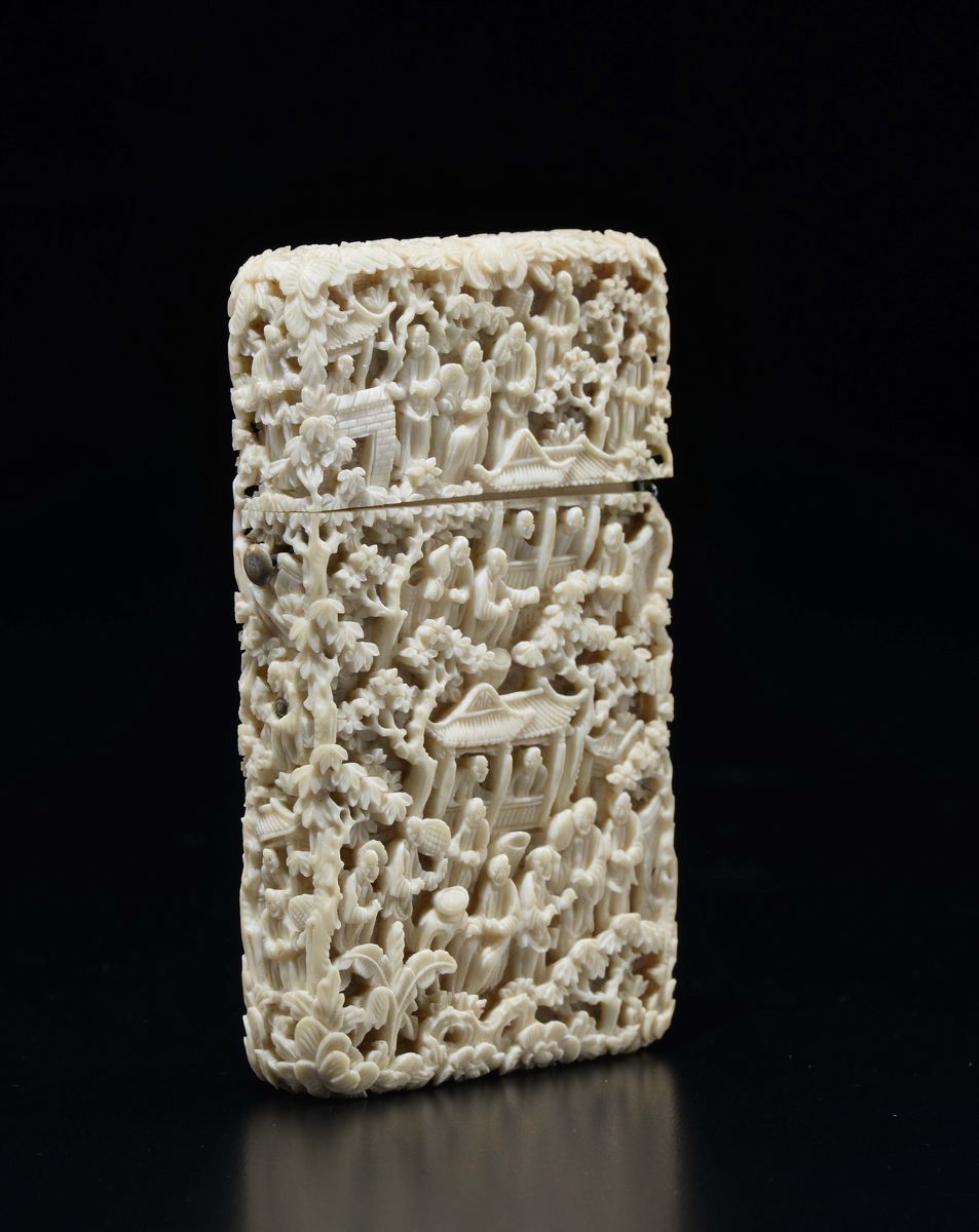 A carved ivory card case with common life scenes, Canton, China, Qing Dynasty, 19th century