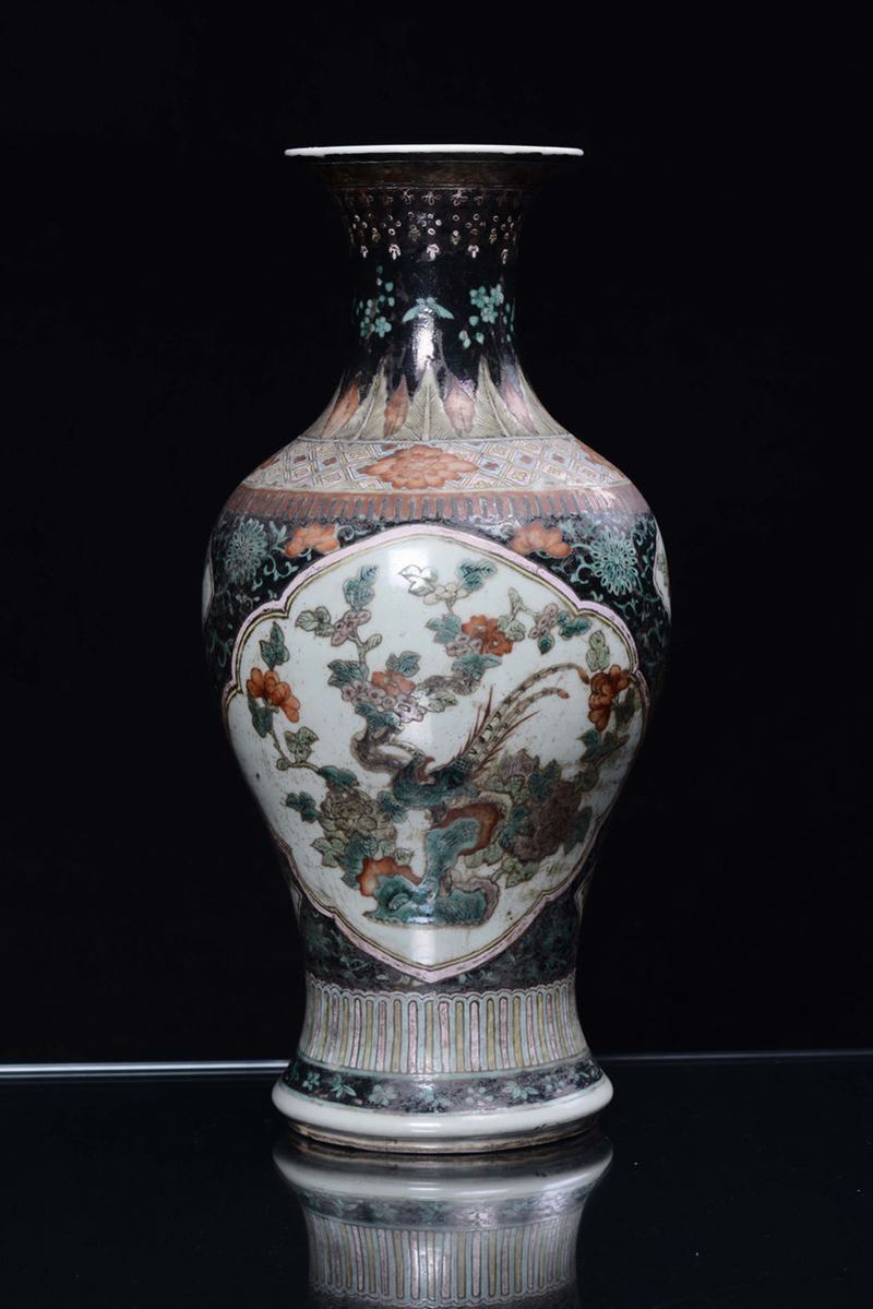 A Famille-Noir vase with naturalistic decoration, China, Qing Dynasty, 19th century