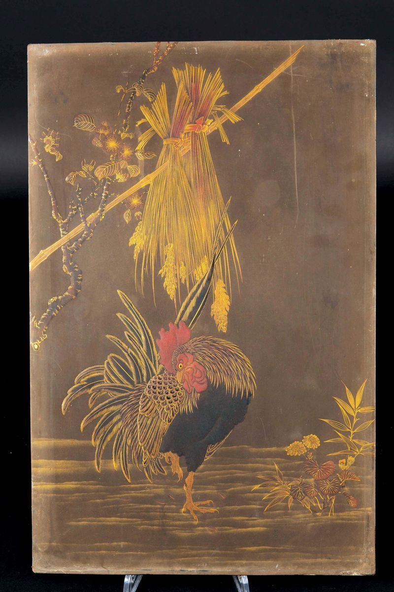 A lacquered wooden plaque depicting rooster, Japan, 19th century