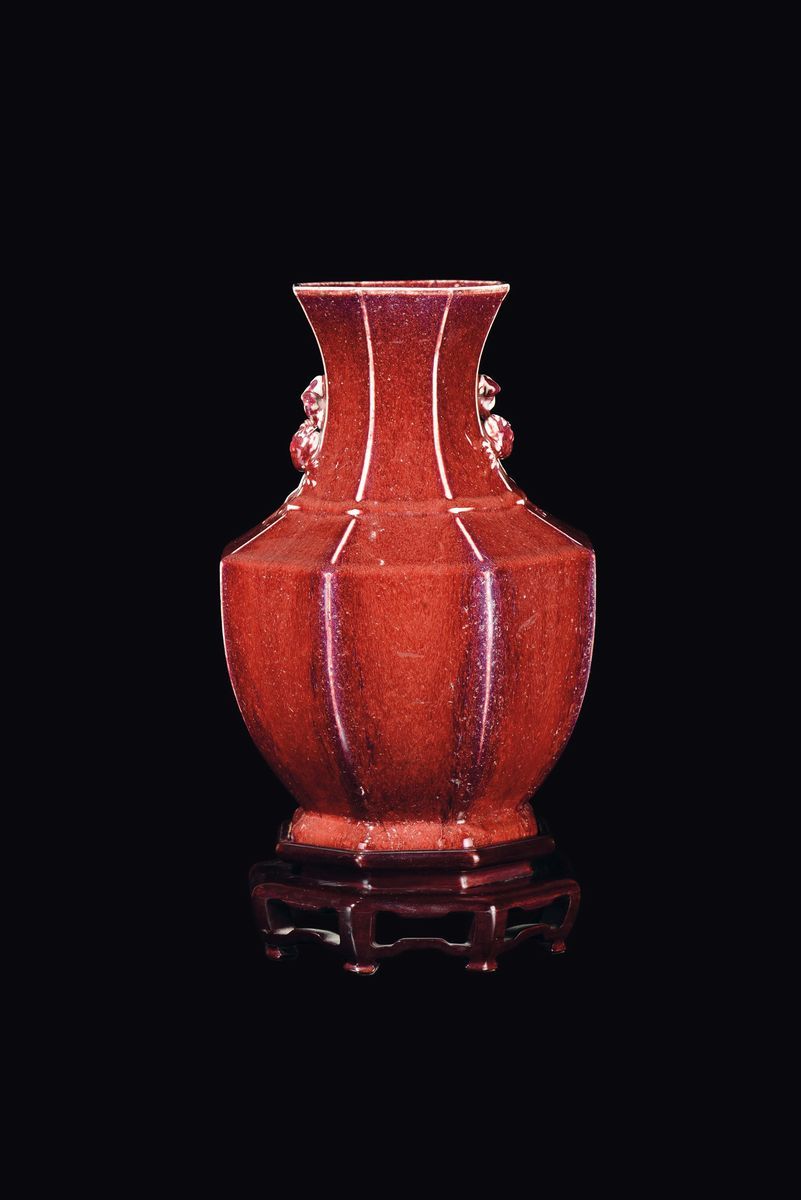 A monochrome red-glazed vase, China, Qing Dynasty, 19th century