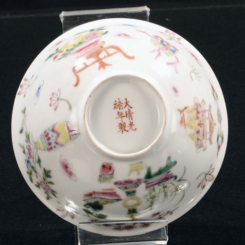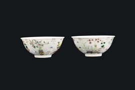 A pair of polychrome enamelled porcelain bowls with floral decorations, China, Qing Dynasty, 19th century