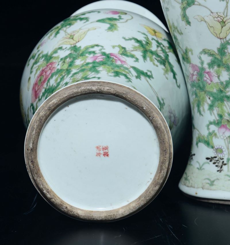 A pair of polychrome enamelled porcelain vases, China, Qing Dynasty, Guangxu Mark and of the Period (1875-1908)