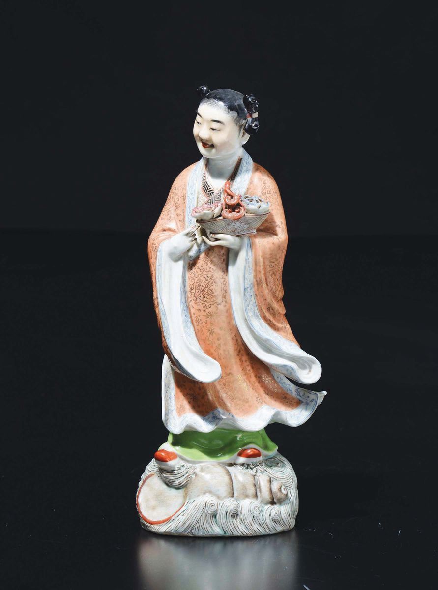 A polychrome enamelled porcelain figure of Geisha, Japan, 20th century