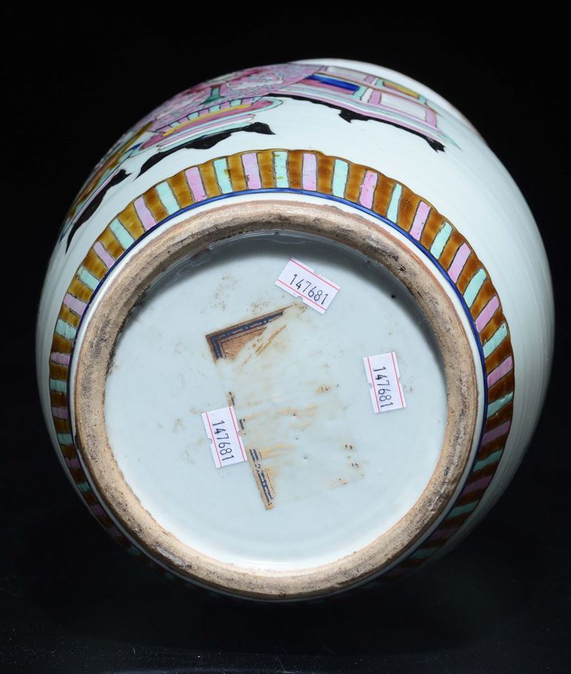 A polychrome enamelled porcelain vase with naturalistic decoration, China, 20th century