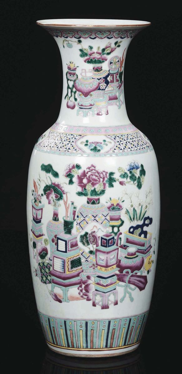 A polychrome enamelled porcelain vase with naturalistic decoration, China, 20th century