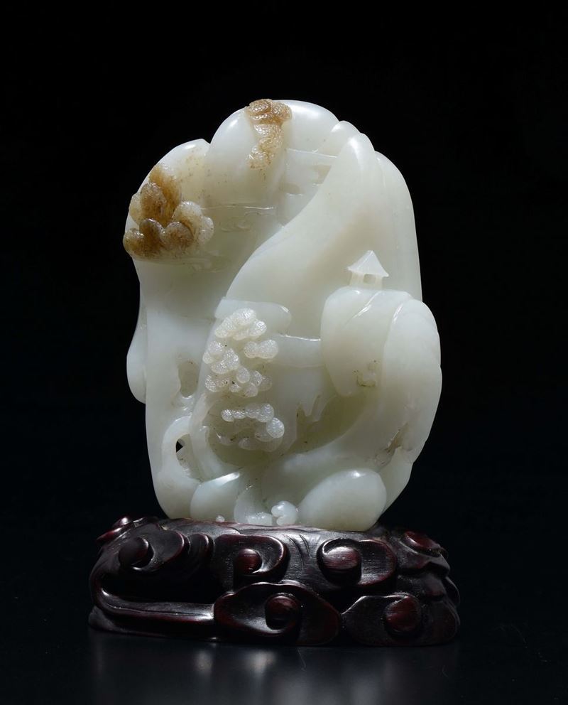 A white jade mountain with wise men between landscape in relief, China, 20th century