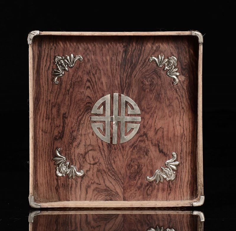 A wood and ivory glove box with silver bats decoration, China, Qing Dynasty, 18th century