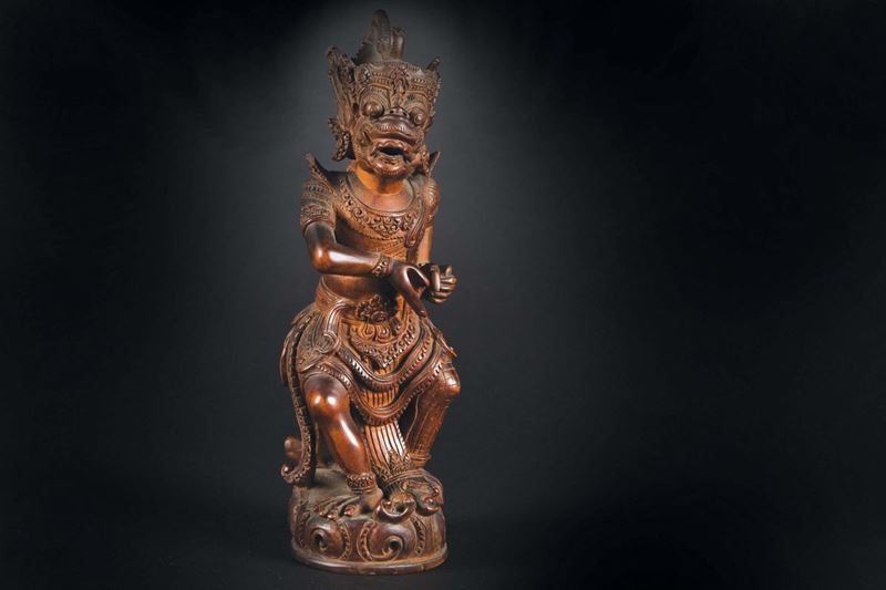 A wooden figure of deity, Indonesia, 19th century
