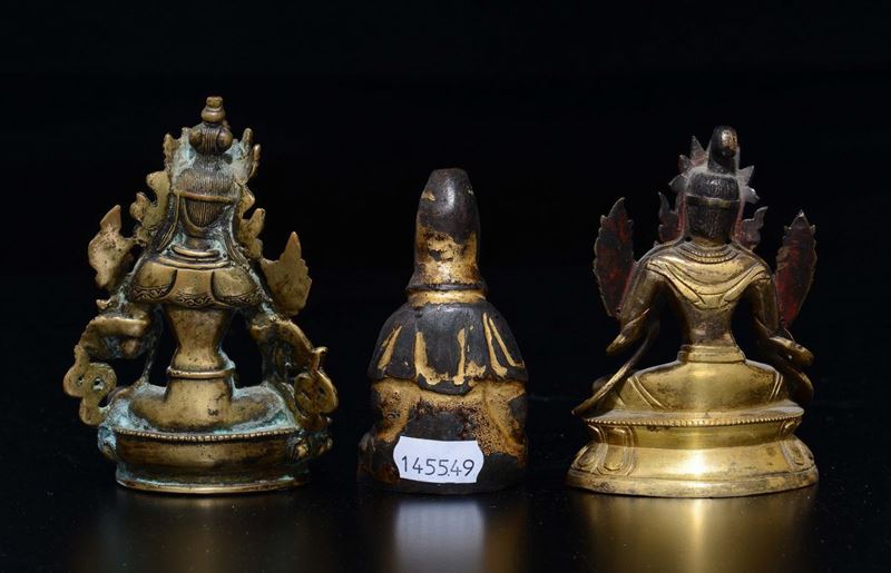 Three gilt bronze figures, two Amitaya and a Guanyin, China, Qing Dynasty, 18th century