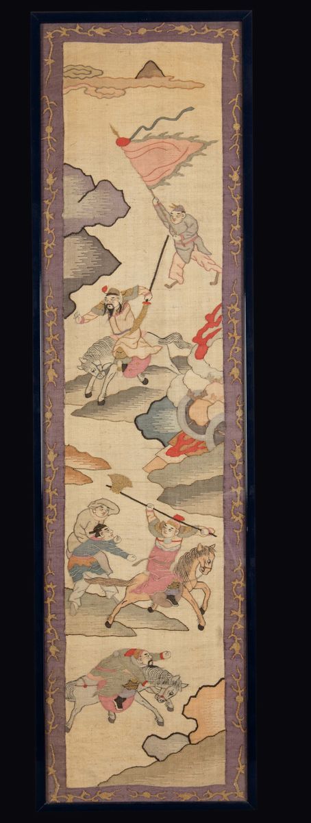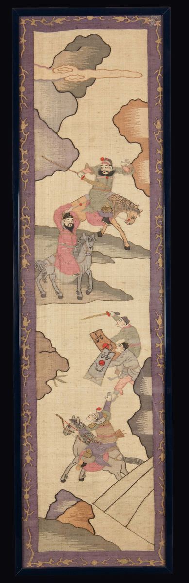 Three silk Kesi depicting battle scenes, China, Qing Dynasty, 19th century